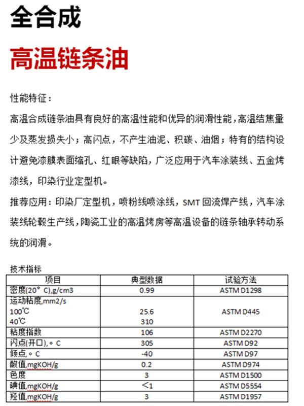 廈門(mén)威馬工貿(mào)有限公司位于美麗的花園城市-廈門(mén)市同安區(qū),公司專(zhuān)營(yíng)合成高溫油脂系列產(chǎn)品。產(chǎn)品分為:高溫鏈條油、高溫潤(rùn)滑脂、高低溫潤(rùn)滑脂等系列油品。廣泛應(yīng)用于:定型機(jī)、噴涂/噴粉、巖棉等高溫潤(rùn)滑設(shè)備,本品無(wú)煙,無(wú)殘?jiān)?,屬于全合成高溫油系列,可寄樣試用,長(zhǎng)期服務(wù)全國(guó)客戶(hù)。